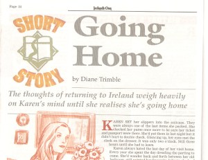 This week marks the seventh anniversary of our move to rural Fermanagh. It hardly seems that it’s been that long since my husband and I came to his family farm and I started to blossom into a country girl – though I think I may have a ways to go yet…So the surprise I had yesterday morning was pleasant and appropriate. When I stopped at the newsagent’s, on my way to work, I opened Ireland’s Own magazine and saw my story, Going Home, printed in this week’s issue. The story is about a Canadian woman who realises that Ireland has become her home. The editor couldn’t have timed it better!