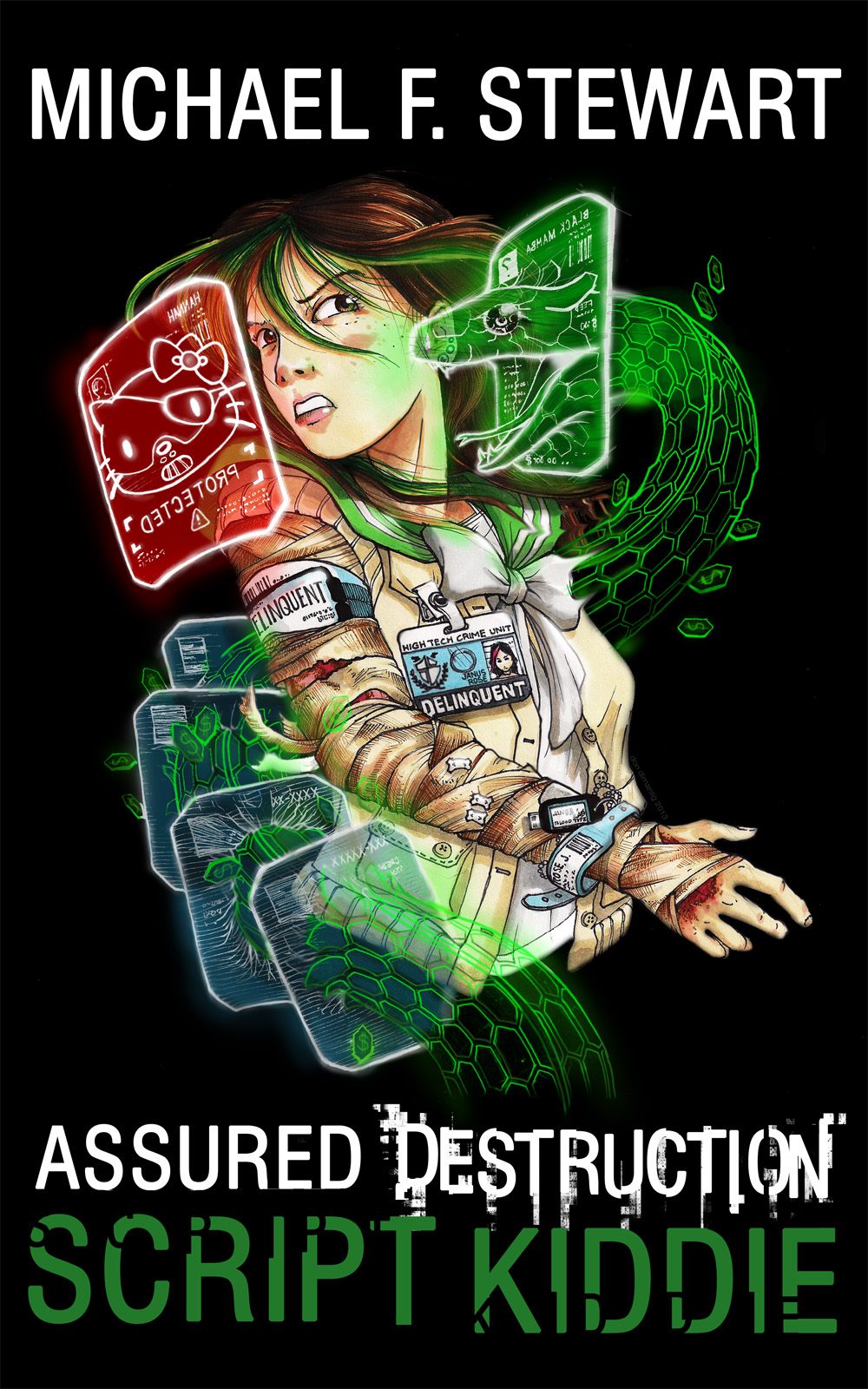 Assured Destruction: Script Kiddie is very different than 24 Bones but equally captivating. 24 Bones is a dark fantasy with a complicated plot, a large cast of characters and a lyrical writing style. Assured Destruction is a much simpler book with fewer characters, a linear plot and a modern, spare writing style. It seems to me that Stewart can handle these two very different genres with equal competence as both books held my attention from the outset.