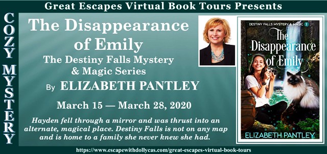 Thank you for answering my questions, Hayden, and good luck to you and your author, Elizabeth Pantley, with The Disappearance of Emily, the latest book in the Destiny Falls Mystery and Magic series.