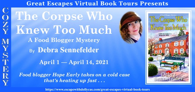 Thank you for answering my questions, Debra, and good with The Corpse Who Knew Too Much, the latest book in the Food Blogger mystery series.
