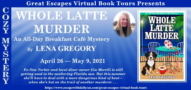You’re welcome, Gia. Thank you for answering my questions and good luck to you and your author, Lena Gregory, with Whole Latte Murder, the latest book in the All-Day Breakfast Cafe mystery series.