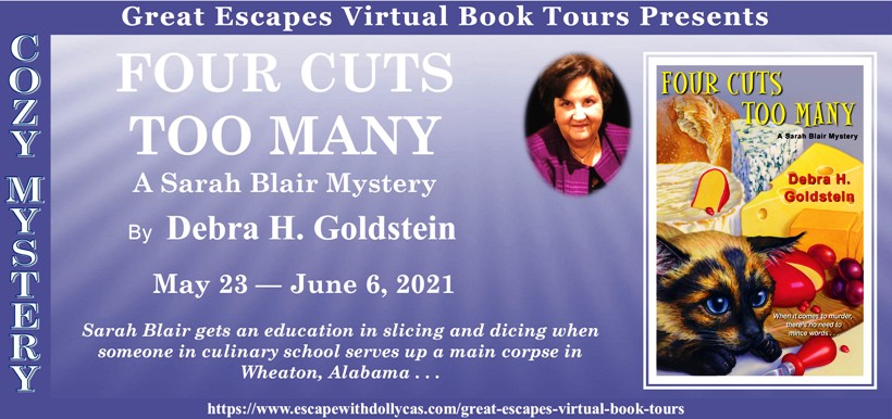 Today Debra H. Goldstein is visiting Ascroft, eh? to tell us about Four Cuts Too Many, her latest novel in the Sarah Blair Mystery series.