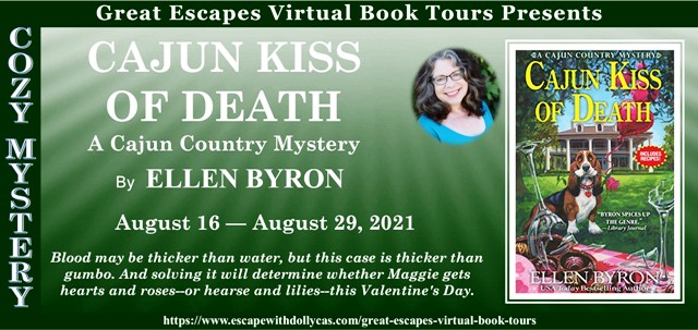 Thank you for answering my questions, Maggie, and good luck to you and your author, Ellen Byron, with Cajun Kiss of Death, the latest book in the Cajun Country mystery series.