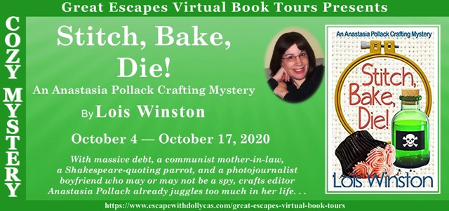 Thank you for answering my questions, Anastasia, and good luck to you and your author, Lois Winston, with Stitch, Bake, Die! the latest book in the Anastasia Pollack Crafting Mysteries series.