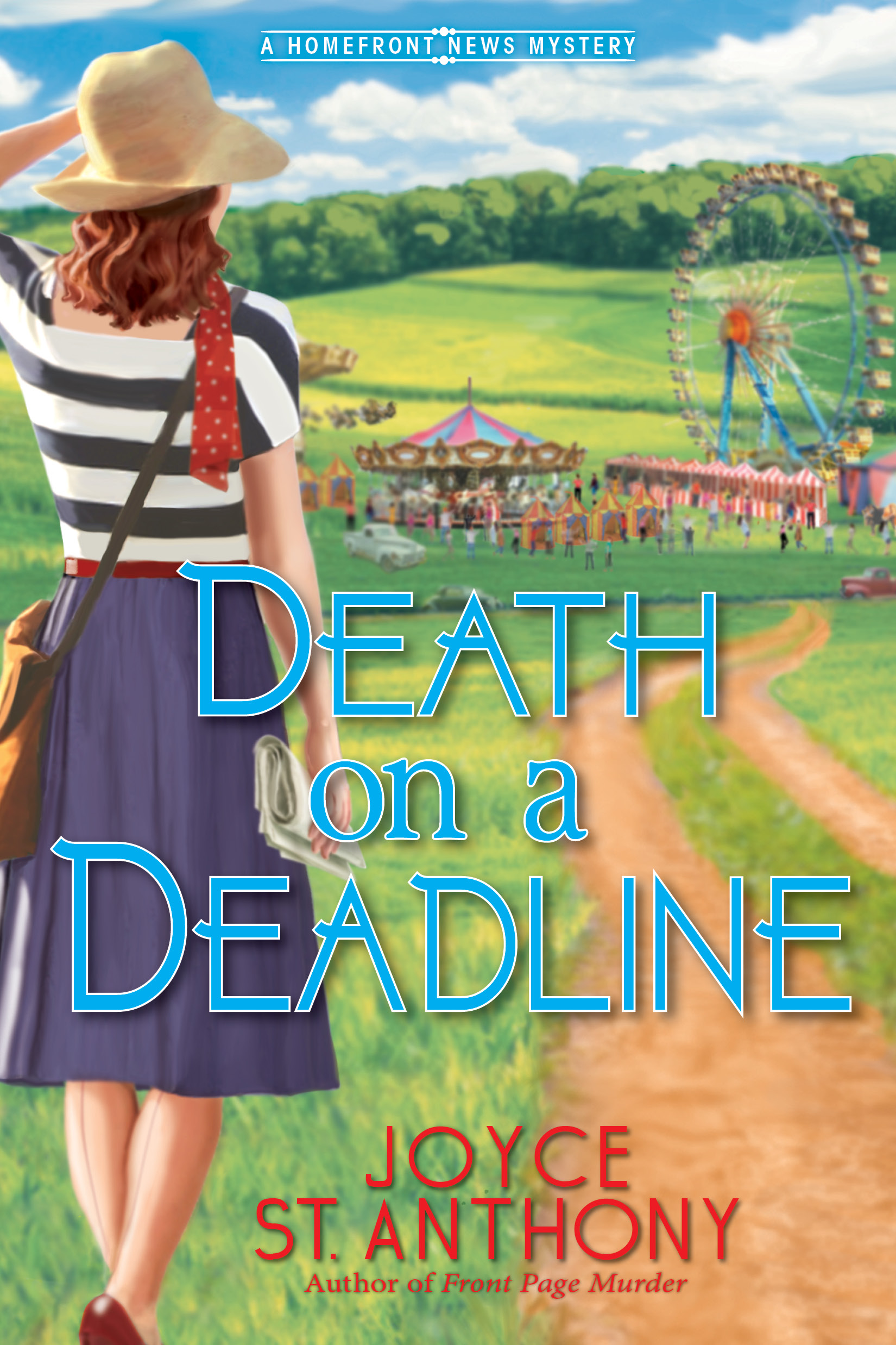 Death on a Deadline is the second book in the Homefront News Mysteries. In this follow up to Front Page Murder, Irene Ingram is becoming more comfortable being the editor in chief of her father’s newspaper while he’s overseas as a war correspondent. The whole town of Progress is excited that movie stars are coming to town for the county fair and some are sure that one of them will be Clark Gable. When it turns out to be B-movie actor Freddie Harrison instead, and Irene finds his body in the dunk tank at the fair, she’s determined to find out what happened.