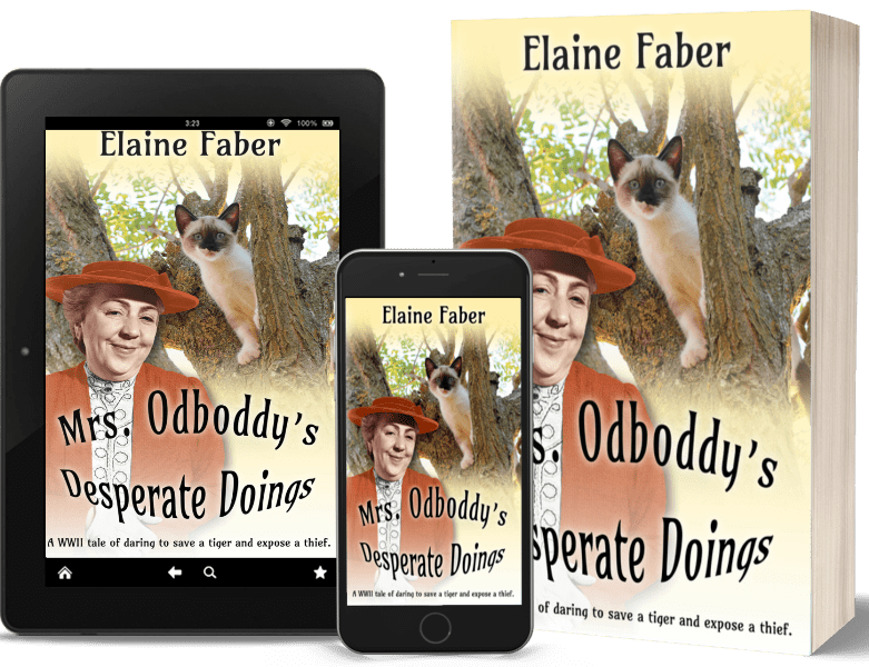My name is Agnes Agatha Odboddy. I’m delighted to meet you and share my series with you and your fans. Mrs. Odboddy’s Desperate Doings in the fourth in my WWII humorous historical fiction series. I’m 70+ years young. The age on my driver’s license is just a number. I think our true age has to do with our attitude and life experiences. During WW ONE, I was a US secret agent in Europe. Now, in 1944, I have to fight WWII from the home front. In my previous Mrs. Odboddy adventures, I attempted to expose a Nazi spy and a ration book black market scam, (Mrs. Odboddy Hometown Patriot), traveled across the country by train to deliver a package to President Roosevelt in book two (Mrs. Odboddy Undercover Courier), and in (And Then There was a Tiger), book three, I accidently discovered a counterfeit money operation and saved the life of a displaced carnival tiger. My granddaughter, Katherine, says she is hard pressed to keep me out of trouble. I can’t imagine why she thinks that.