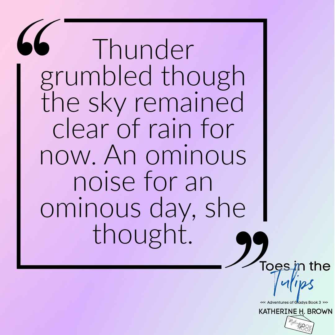 Thank you for answering my questions, Gladys, and good luck to you and your author, Katherine H. Brown, with Toes in the Tulips (Adventures of Gladys), the latest book in the Mystery Book Nook Shared World series.