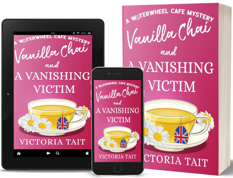Vanilla Chai and a Vanishing Victim is the third book in my Waterwheel Café Mystery series. It’s a sad story of the kidnapping of a child but don’t worry, the boy isn’t harmed and he is returned to his parents.