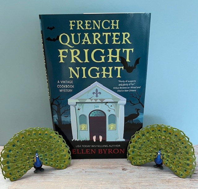 Jambalaya, the peacock, is visiting Ascroft, eh? to tell us about French Quarter Fright Night, the latest novel in the Vintage Cookbook mystery series.
