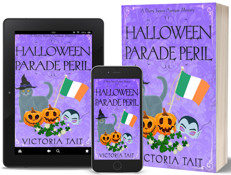 Thank you for answering my questions, Dotty, and good luck to you and your author, Victoria Tait, with Halloween Parade Peril, the latest book in the Dotty Sayers Antique mysteries series.