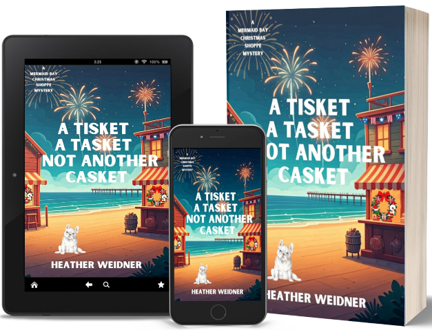 About Heather Weidner: Through the years, Heather Weidner has been a cop’s kid, technical writer, editor, college professor, software tester, and IT manager. She writes the Pearly Girls Mysteries, the Delanie Fitzgerald Mysteries, The Jules Keene Glamping Mysteries, and The Mermaid Bay Christmas Shoppe Mysteries.
