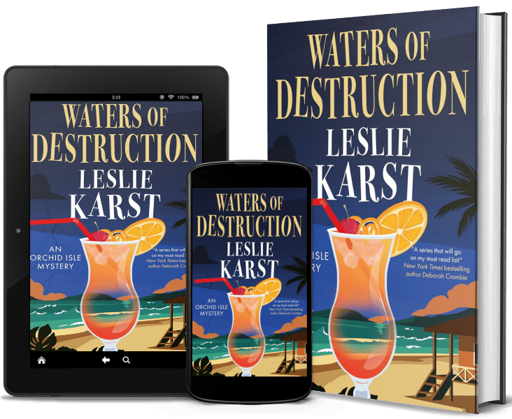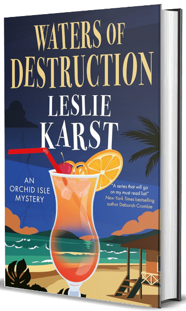 Thank you for sharing this with us, Leslie, and good luck with Waters of Destruction, the latest book in the Orchid Isle mystery series. Readers can learn more about Leslie Karst by visiting the author’s website and his Facebook, Bookbub and Goodreads pages.