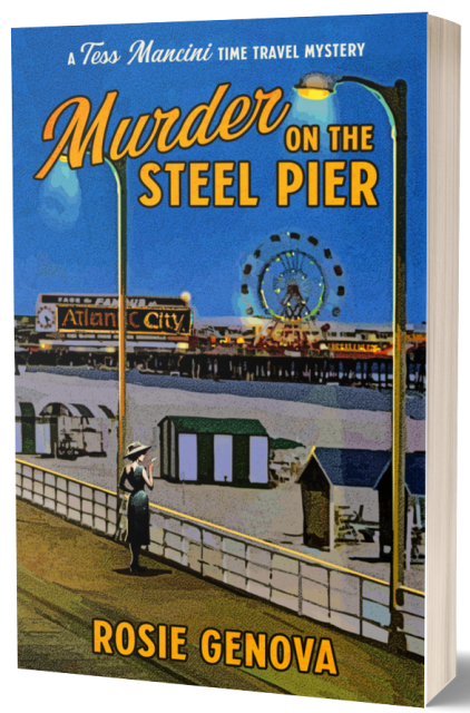 Thank you for sharing this with us, Rosie, and good luck with Murder on the Steel Pier, the first book in the Tess Mancini Time Travel mystery series. Readers can learn more about Rosie Genova by visiting the author’s website and her Facebook and Bookbub pages.