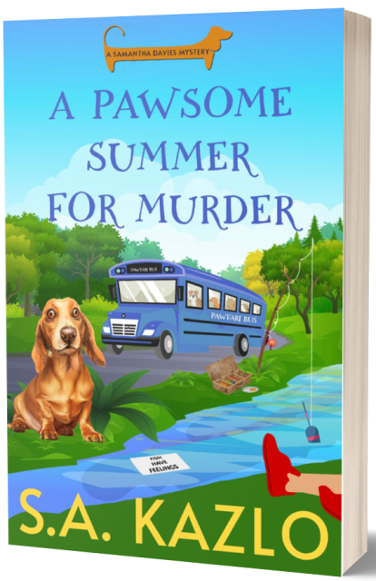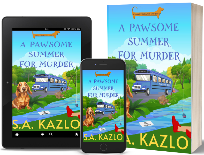 Thank you for sharing this with us, Sam, and good luck to you and your author, S. A. Kazlo with A Pawsome Summer for Murder, the latest book in the Samantha Davies mystery series. Readers can learn more about Sam and her author, S. A. Kazlo by visiting the author’s website and her Facebook, Instagram and LinkedIn pages. Readers can also follow her on Twitter/X.