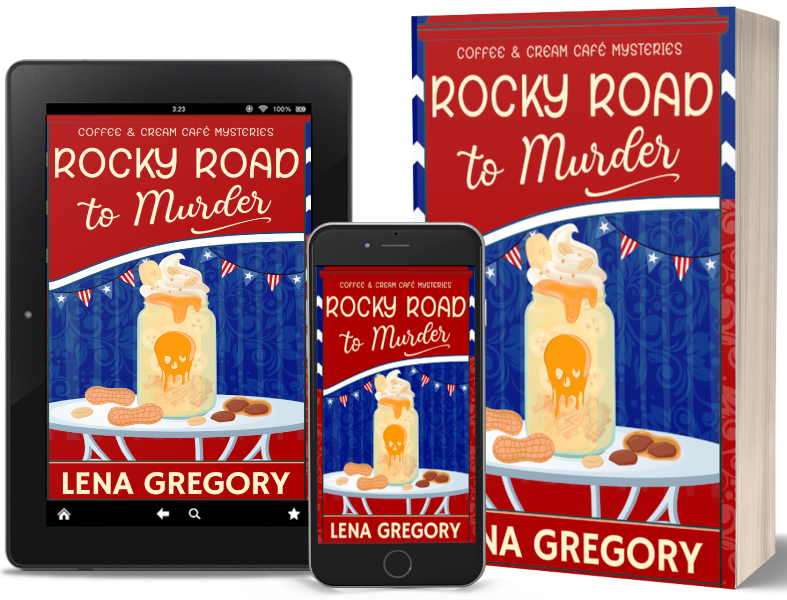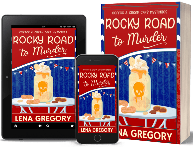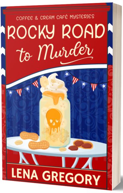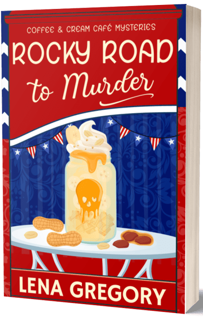 Rocky Road to Murder is the sixth book in the Coffee & Cream Café Mystery series, which take place in the small town of Watchogue on Eastern Long Island’s south shore. At this point, things are looking up for my Coffee & Cream Café. At least, they were until recently. I was invited to cater and attend the biggest event of the summer season, the Rutherford Manor Fourth of July gala. Unfortunately, I arrived to find the hostess, Cressida Rutherford, dead with the dessert I provided for the party melted in a puddle around her. Now, I’ll have to spend the rest of the summer trying to prove I’m not the one who killed her.