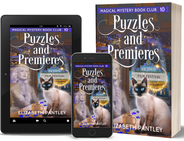 Thank you for sharing this with us, Valeria, and good luck with Puzzles and Premieres, the latest book in the Magical Mystery Book Club mystery series. Readers can learn more about Elizabeth Pantley by visiting the author’s website and her Facebook, Bookbub, Instagram and Goodreads pages.