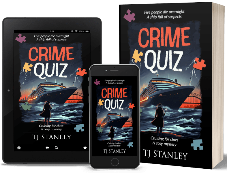 I have my friend Debbie to thank for the idea for the opening scene in Crime Quiz. She’d just returned from a cruise off the coast of Western Australia where the passengers were woken at five in the morning by an announcement from the captain that five people had died overnight.